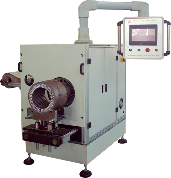 本機(jī)適用于中大型感應(yīng)電機(jī)定子槽絕緣紙的自動插入。采用進(jìn)口PLC程控,彩色觸摸屏控制,可設(shè)定緩升起動時間、減速時間。各動作均用機(jī)械聯(lián)動設(shè)計及間隙送紙機(jī)構(gòu),有兩端自動翻邊,自動定長切斷,自動成型,自動插入,操作簡單,更換模具方便。