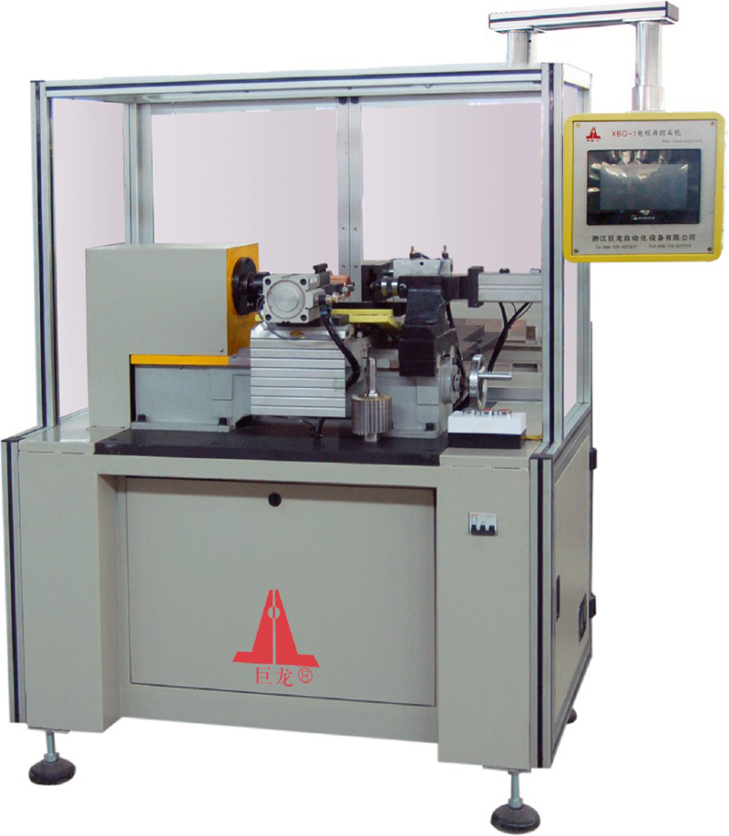 Suitable for start-up motor commutator end of the line after cutting the head into the commutator of the special equipment.Mitsubishi PLC program-controlled, touch screen display, the motor deceleration to drive the spindle rotation, stepper motor stepping without copper cutting and rolling type will head and head into the commutator embedded trough, cylinder tailstock top rotor, simple operation ,high automation.
