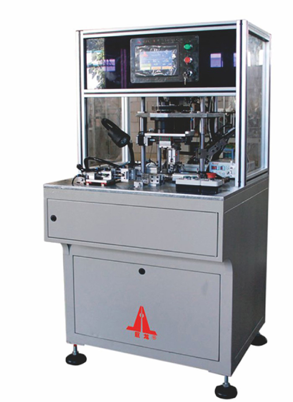 Suitable for strapping field coil of auto starter.Mitsubishi PLC program control, color touch screen control parameters, stepper motor driven rotation, into the coil set the angle of the parameters, special automatic turning to strap the belt, and automatically trickle glue to fix the belt end, all-round coil package, simple operation.