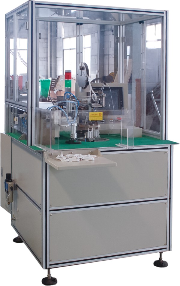 本機(jī)用于汽車起動(dòng)電機(jī)定子扁線磁場(chǎng)線圈包扎絕緣帶的專用設(shè)備。采用三菱PLC程控,彩色觸摸屏控制參數(shù),機(jī)械手自動(dòng)上下工件,放入線圈定好角度參數(shù)后,自動(dòng)轉(zhuǎn)位過彎包帶,并自動(dòng)滴膠固定帶頭,線圈全方位包帶,操作簡(jiǎn)單,使用方便。