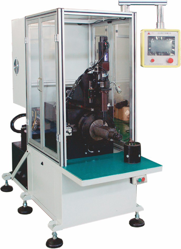 本機用于起動電機定子外殼與磁場線圈裝配后緊螺絲釘工序的專用設(shè)備。采用三菱PLC程控,觸摸屏顯示,伺服電機驅(qū)動擰螺絲頭旋轉(zhuǎn),用電阻應(yīng)變式拉力傳感器檢測擰緊力矩裝置,有壓力上下限報警功能,單頭擰頭,自動漲緊,自動分度,使用方便。