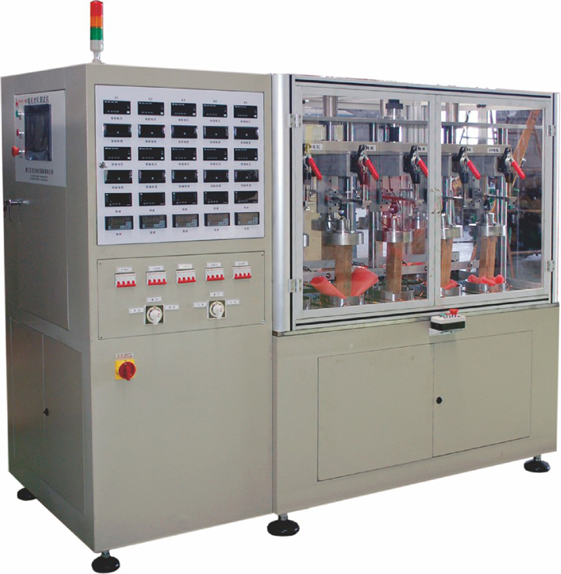 This machine is the special equipment suitable for rotary aging running of carbon brush and commutator of starting motor and has test function.It can age excitation or series-excited DC motors, and can simultaneous aging up to 10 motors. This machine can set multi-segment voltage and aging time. This machine uses excitation and series switch, positive and negative switch.It can test independent armature and excitation of voltage and current detection of each motor, speed detection, temperature detection. Each motor is independently switched.