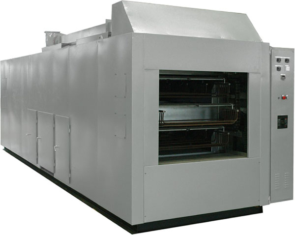 適用于感應(yīng)電機(jī)定子、電器線圈、小型變壓器的自動(dòng)浸絕緣漆并烘干處理。采用吊籃連續(xù)式工作方式,工件按設(shè)定工藝技術(shù)參數(shù),自動(dòng)完成預(yù)熱、浸漆、滴干、凝膠、固化工序,三菱PLC程控,觸摸屏顯示,操作方便,生產(chǎn)效率高。