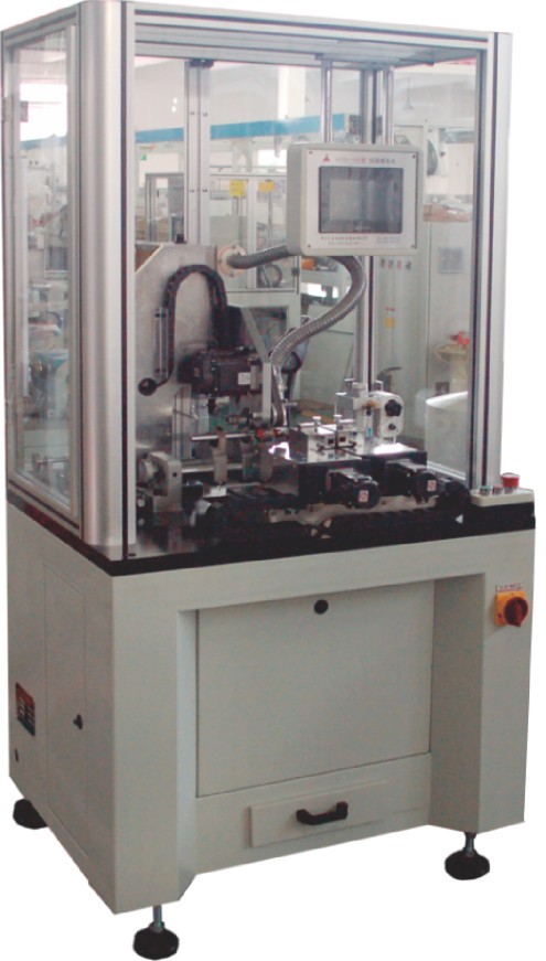 本機適用于汽車電機、摩托車起動電機、電動工具串激電機、永磁電機、直流伺服電機的高精度自動車削。采用四個三菱伺服電機,進口PLC程控,彩色觸摸屏控制,走刀和進刀位置可精確設(shè)定,車削次數(shù)可多次進行,進刀量和走刀量在觸摸屏上顯示,伺服走刀速度均勻,精度高,硬質(zhì)合金V形塊支撐轉(zhuǎn)子軸,軸承檔有自動噴油裝置,配置高硬度寶石刀頭,皮帶摩擦轉(zhuǎn)子外圓自動車削,電器機械互鎖設(shè)計,安全可靠,所有動作一次完成,人工上下工件,操作簡單方便。