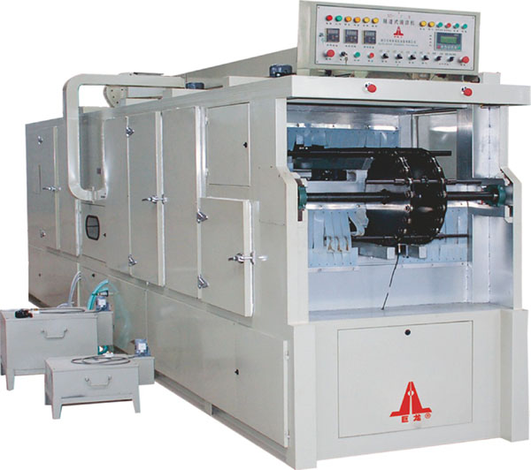 適用于電動(dòng)車輪鼓電機(jī)線圈預(yù)熱、滾漆,烘干的專用設(shè)備。本機(jī)采用三菱PLC可編程控制,進(jìn)口變頻器調(diào)速,氣動(dòng)與機(jī)械相結(jié)合的結(jié)構(gòu),采用鏈輪旋轉(zhuǎn)運(yùn)動(dòng),使鏈條產(chǎn)生步進(jìn)運(yùn)動(dòng),定位輸送,邊轉(zhuǎn)邊滾,移位準(zhǔn)確,多段數(shù)字控溫,定漆液面定時(shí)定次滾漆,操作簡單,生產(chǎn)效率高。